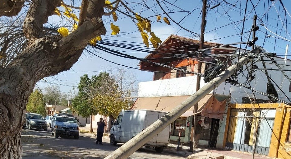 Diversos daños en el servicio de Energía de Catamarca SAPEM tras desatarse un fuerte viento zonda en la ciudad de Tinogasta y Fiambalá.
