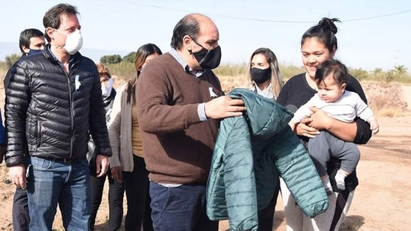 En el inicio de la entrega, los vecinos reciben frazadas, colchas y cuellos polares, pero además se continuará relevando las necesidades de cada familia.