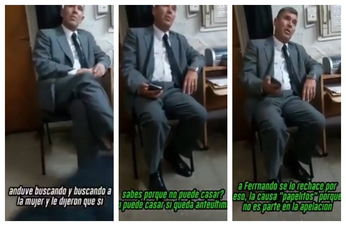 En el diálogo, que a su vez está subtitulado, se habla de una suma de 820 mil pesos, de los cuales el detenido solo habría conseguido 200 mil. “...yo ya le cobré...” expresa el sujeto que, a posteriori, se observa dar un sobre con lo que, supuestamente, sería el dinero a Morales, en primer término y, luego, a Da Pra. Durante la filmación, se menciona la conocida causa de “los papelitos” y “OUCRA”, como si se tratarán de dos investigaciones en las que también los funcionarios judiciales denunciados habrían tenido algún tipo de intervención.