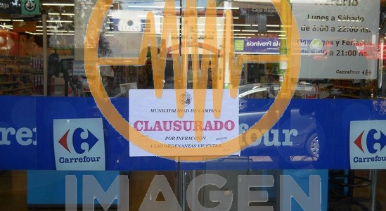 En un operativo realizado por inspectores de la Subdirección de Bromatología Municipal se clausuró el supermercado "Carrefour", que está ubicado en peatonal Rivadavia, por presencia de insectos y falta de higiene general.