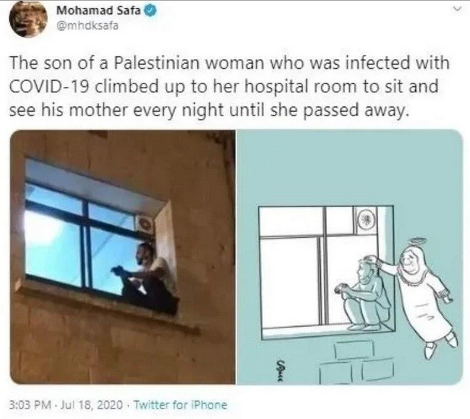 Ocurrió en Cisjordana, dónde un joven trepó cada noche las paredes de un hospital para ver a su madre infectada por coronavirus en la Unidad de Cuidados Intensivos (UCI) hasta que ella falleció.