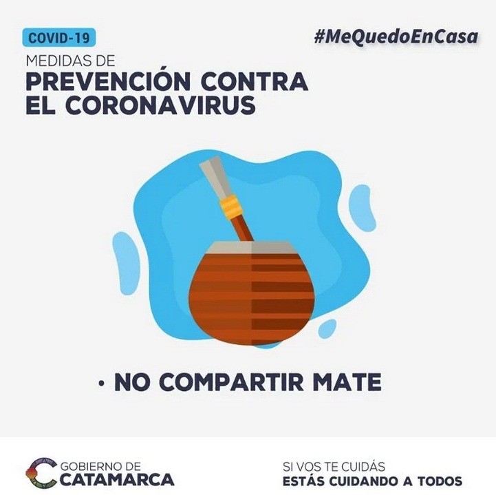 "Debido a la situación que está atravesando el país por la Pandemia COVID-19, se suspende el uso del Mate, como medida de prevención y cuidado. Al virus lo frenamos cuidándonos entre todos", reza el comunicado que desde ayer circula en todas las áreas de Salud.