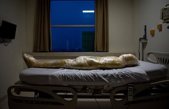 Tras la muerte del paciente, las enfermeras del centro de salud envolvieron el cadáver en capas de plástico y además aplicaron desinfectante con el fin de evitar la propagación de la enfermedad.
