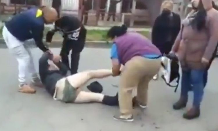 Se trata de Braian Bravo, de 24 años, quien tras ser capturado por los vecinos ruega por su vida. “En nombre de Jesús, por favor”, pide al tiempo que una mujer le saca las zapatillas, dos hombres intentan maniatarlo con una soga y otro le pisa la cabeza. “¿Ahora te acordás de Jesús?”, le responden. “Déjenme, por favor, ya devolví todo”, le insiste a los vecinos pero no lo sueltan.