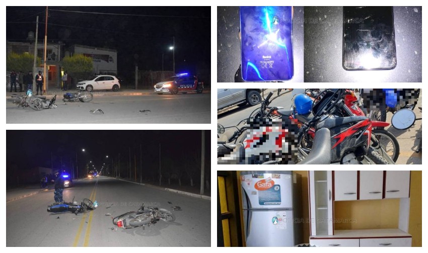 Dos motos protagonizaron un siniestro vial en Belén-Aprehenden a dos jóvenes en el sur de la Capital-Policías asistieron a un niño descompensado-Tras un registro domiciliario recuperan una heladera y un modular sustraídos