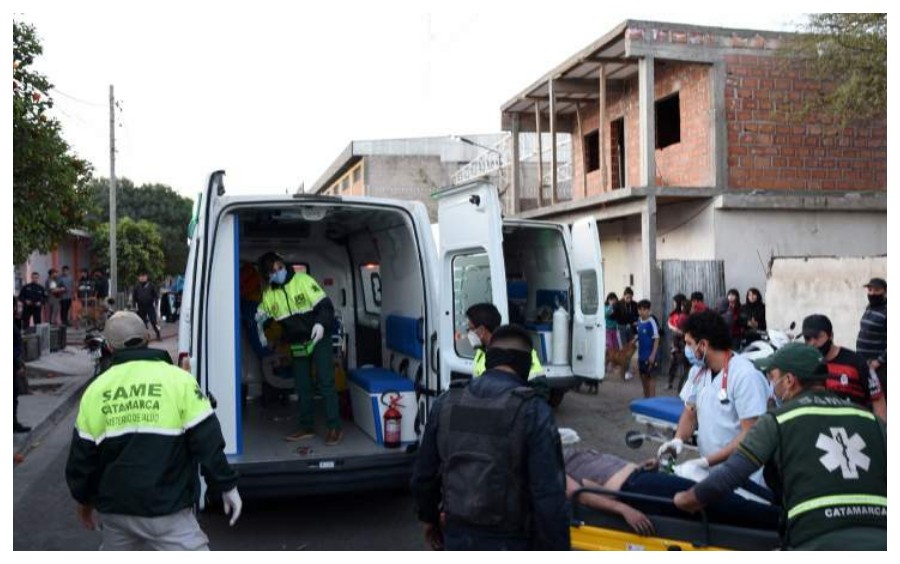 A raíz de esto, los efectivos policiales le brindaron los primeros auxilios y rápidamente llamaron a personal médico del SAME y lo trasladaron en ambulancias al Hospital San Juan Bautista.