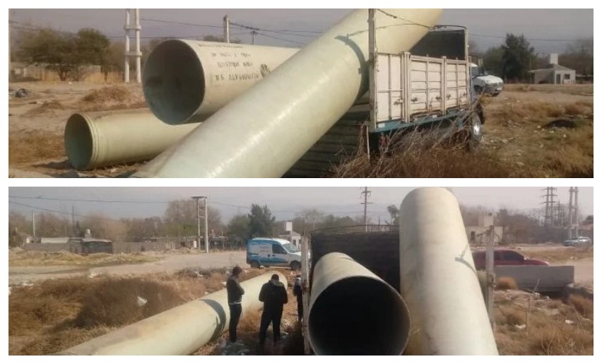 Personal de la comisaría Decima detuvo a un grupo de personas que trataban de robar caños PRFV 1000 mm, los caños son destinados para la obra de Cloacas Riveras del Valle.