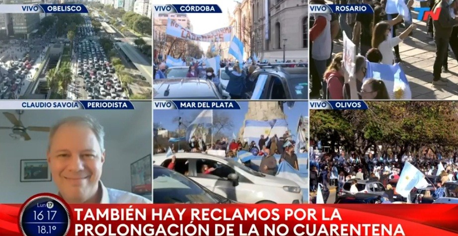 Manifestantes se reúnen en distintas ciudades de la Argentina para participar de la marcha del 17A, una convocatoria realizada a través de las redes sociales en protesta contra el "atropello de las instituciones". El reclamo, que coincide con el 170 aniversario de la muerte del General José de San Martín, comenzó a las 16 y cuenta con la presencia de artistas y miembros de la oposición, como Patricia Bullrich. No obstante, desde el Gobierno Nacional y el de la Ciudad expresaron preocupación ante la iniciativa, que se desarrolla en el momento de mayor número de contagios por coronavirus.