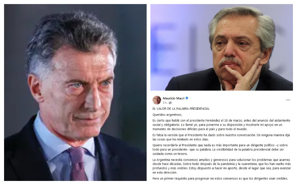 El ex presidente de la Nación Mauricio Macri negó a través de una carta escrita en Facebook los dichos del actual mandatario, Alberto Fernández, sobre la charla que compartieron a mediados de marzo, un día antes de que comenzara la cuarentena.