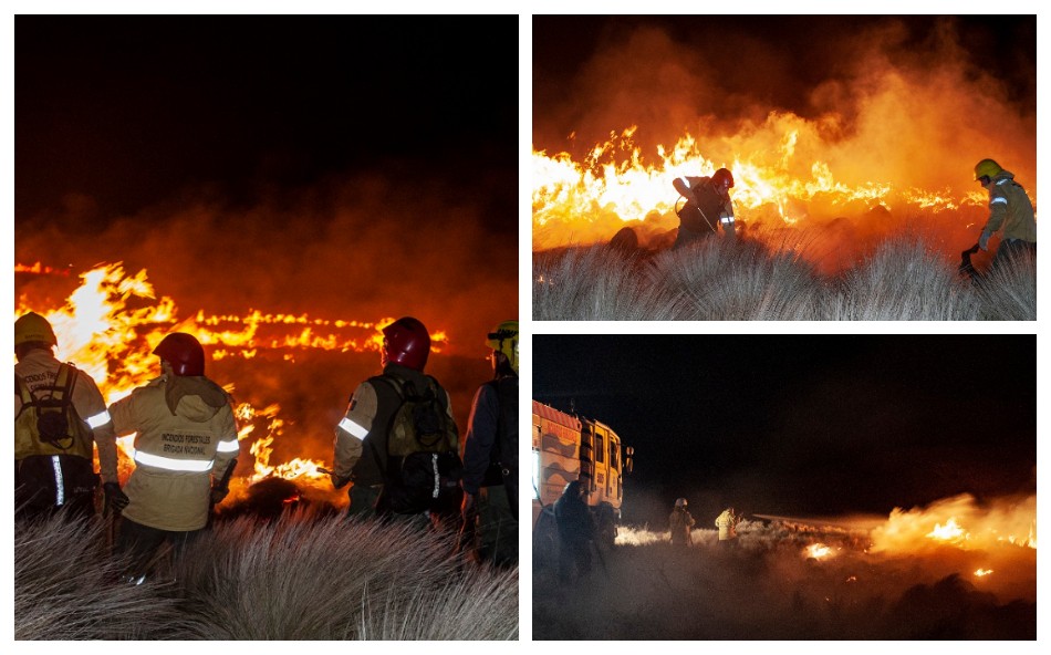 Desde la tarde de ayer, cuadrillas de combatientes de la Brigada realizan tareas con autobombas y la utilización de herramientas de sofocación logrando evitar el avance de los 3 kilómetros de flanco izquierdo y cola del imponente incendio que ya consumió más de 1000 hectáreas de pastizal.