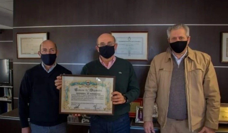 El diputado Carlos Marsilli, autor de la iniciativa, concurrió al Rectorado para entregar copia del texto declarativo al Rector de la casa de altos estudios, Ing. Flavio Fama y al Decano de la citada unidad académica, Ing. Carlos Savio.