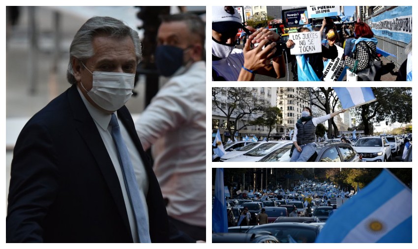 El principal disparador de esta marcha fue el desplazamiento de tres magistrados que investigaban a Cristina Kirchner, aprobado por el oficialismo en el Senado, esta semana. Los temas judiciales y las medidas restrictivas debido a la emergencia sanitaria se constituyeron como los principales ejes de las últimas manifestaciones opositoras en el país.