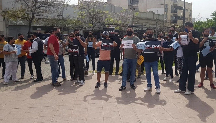 Propietarios, empleados y familiares de locales nocturnos del Valle Central se manifiestaron en plaza 25 de Mayo reclamando a las autoridades de gobierno por la extensión del horario de atención al público.