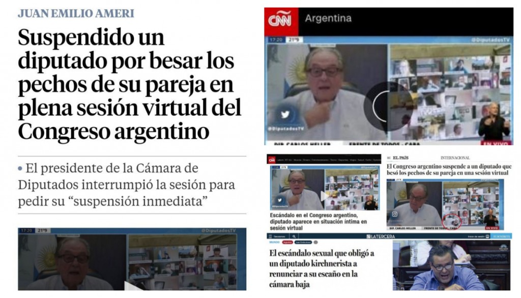 Con titulares como “Suspendido un diputado por besar los pechos de su pareja en plena sesión virtual del Congreso argentino”, “El Congreso argentino suspende a un diputado que besó los pechos de su pareja en la sesión virtual”, “Escándalo en el Congreso argentino, diputado aparece en situación íntima en sesión virtual”, los medios del mundo reflejaron el escándalo sexual protagonizado por el exdiputado Juan Ameri y su pareja.