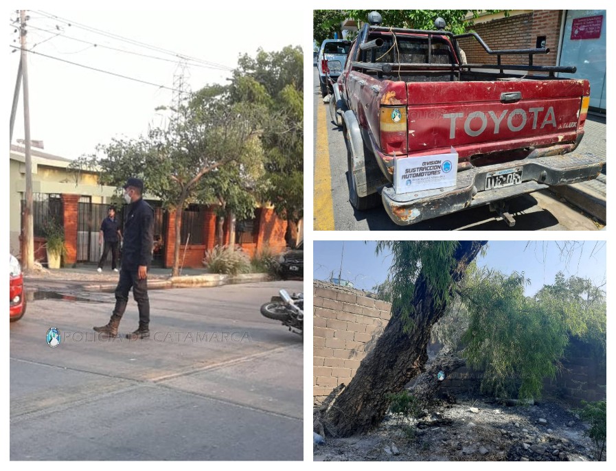 En la mañana de hoy, a las 11:10, tras averiguaciones realizadas, efectivos de la División Sustracción de Automotores de la Policía de la Provincia se constituyeron en un domicilio ubicado en el barrio Ongolí, Dpto. Capayán, donde luego de entrevistarse con el poseedor de una camioneta Toyota Hilux 4-WD, de color bordó, procedieron a controlar el rodado.