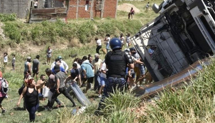 En el video obtenido por el periodista de radio Mitre, Leo Guevara, se puede ver que, quienes intentaban retirar la mercadería, arrojaron piedras a los policías y camioneros. Infantería respondió con balas de goma. Luego se sumó la Sección Especial de Operaciones Motorizadas.