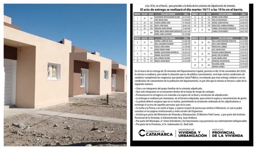 Este martes, a las 19 horas, el Gobernador Raúl Jalil y el ministro de Vivienda, Fidel Saenz, entregarán 20 nuevas viviendas en Valle Chico. Se trata de hogares familiares de dos habitaciones.