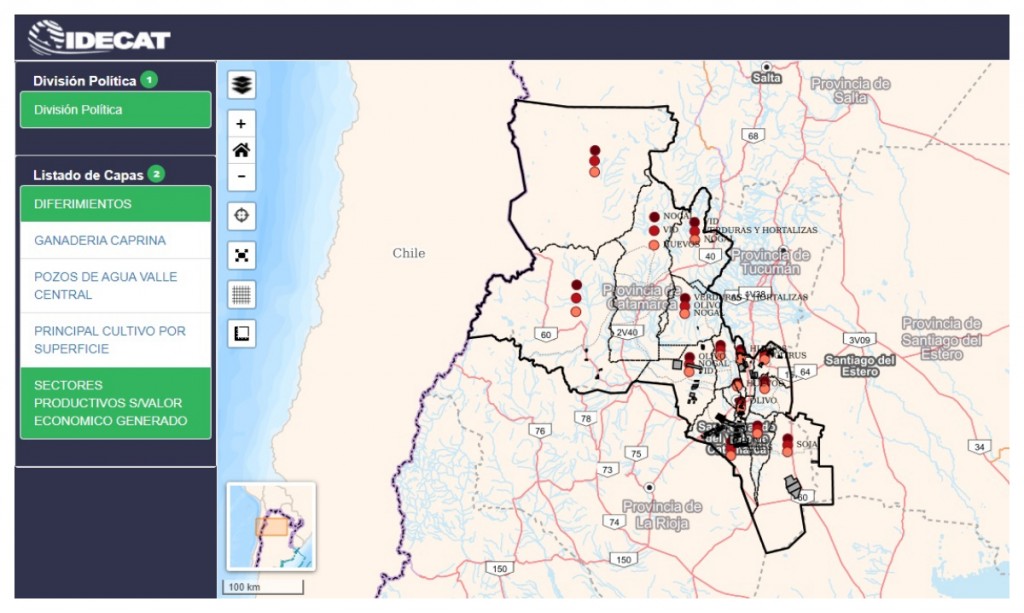“A partir de la puesta en funcionamiento del Nodo IDE Inversión y Desarrollo brindado por la Dirección de IDECAT (Infraestructura de Datos Espaciales Catamarca), hemos cargado y continuamos trabajando en la carga de distintas capas de información en un servidor que permite resguardar el trabajo en la nube, y en un visualizador web, que posibilita el acceso público a las distintas capas que van conformando el mapa. De esta manera, a través del link nodoide.catamarca.gob.ar/inversion/visor los interesados (productores, investigadores, inversores, etc) podrán visualizar la información productiva, y autogestionar los datos y mapas que requieran”, precisó la funcionaria.