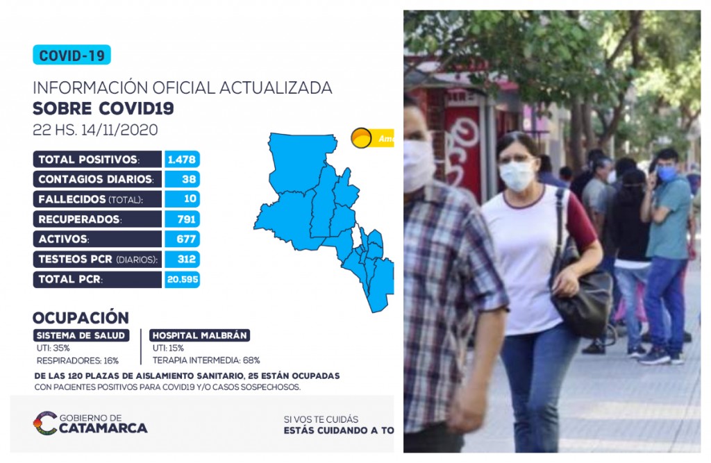 Hasta las 22 horas del sábado 14 de noviembre, se han detectado 38 nuevos casos positivos de coronavirus en la provincia de Catamarca. El total acumulado de casos positivos detectados asciende a 1.478.