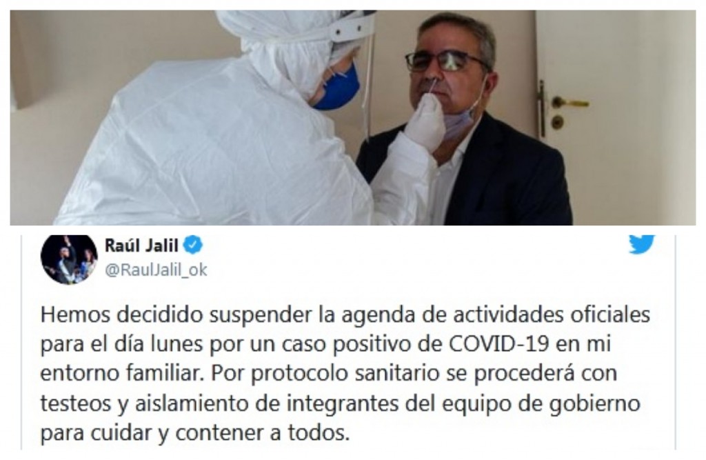 A través de las redes sociales, el gobernador de la provincia, Raúl Jalil, informó que decidió suspender la agenda de actividades oficiales para el día lunes debido a que hay un caso positivo en su entorno familiar.