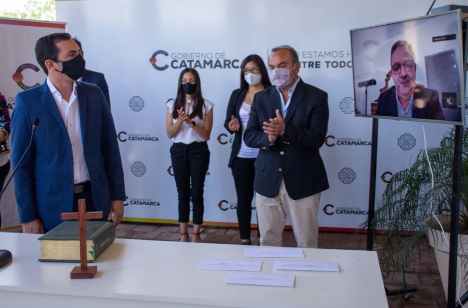 El Gobernador Raúl Jalil, de manera virtual, tomó juramento como ministro de Agricultura y Ganadería, al contador César Rafael Tobías.