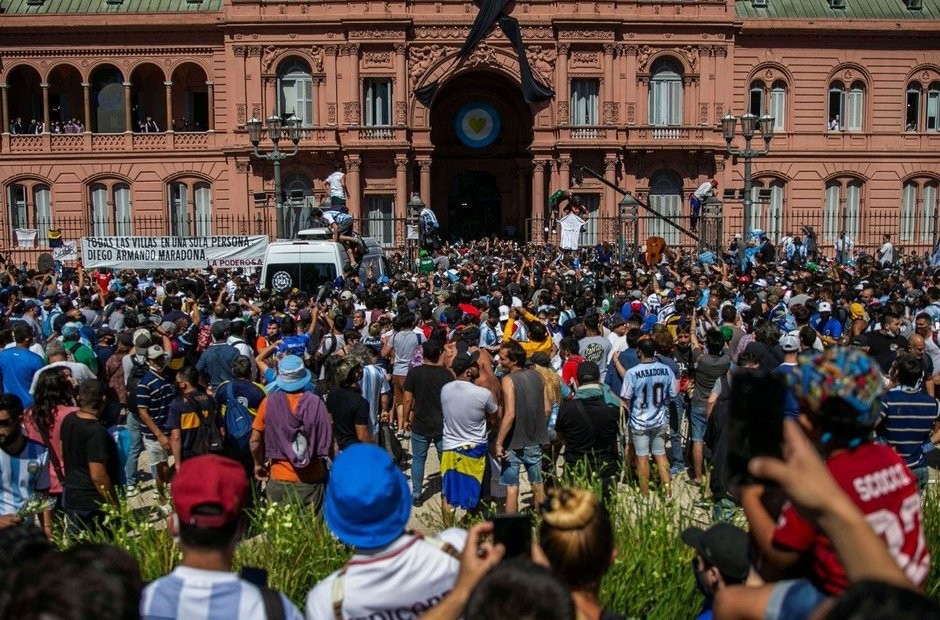 El abogado Yamil Santoro, de la coalición Republicanos Unidos (vinculada al macrismo), presentó una denuncia penal contra el mandatario por la organización del velorio del máximo ídolo popular y lo acusa de "haber violado las normas sanitarias del correspondiente Distanciamiento Social, Preventivo y Obligatorio decretado por el mismo Poder Ejecutivo al convocar masivamente a un funeral de Estado".