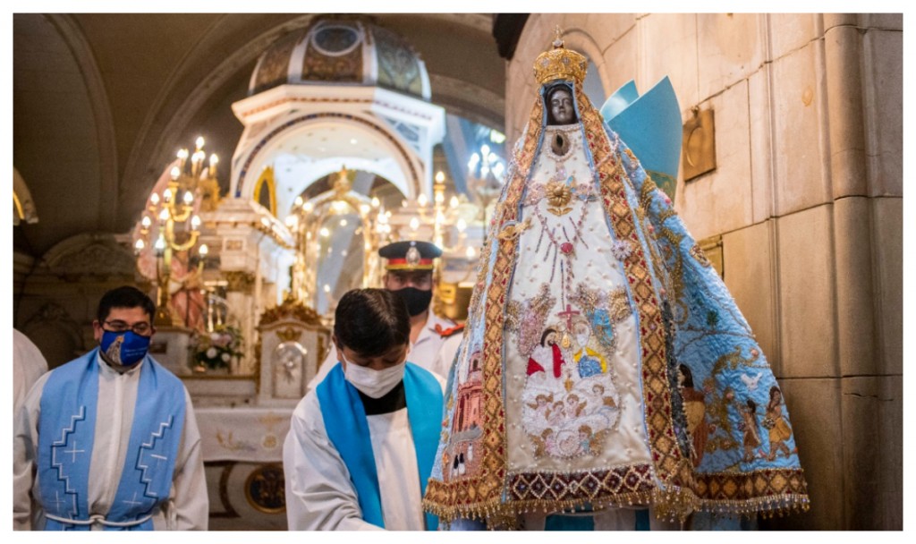 La ceremonia fue presidida por el Obispo Diocesano, Mons. Luis Urbanc, quien llevó en sus brazos la Imagen cuatro veces centenaria, que luego fue depositada en las manos del Rector del Santuario y Catedral Basílica, Pbro. Gustavo Flores, quien por primera vez la colocó en el trono festivo totalmente remozado en este Año Mariano Nacional dedicado a celebrarla por los 400 años de su presencia entre nosotros.