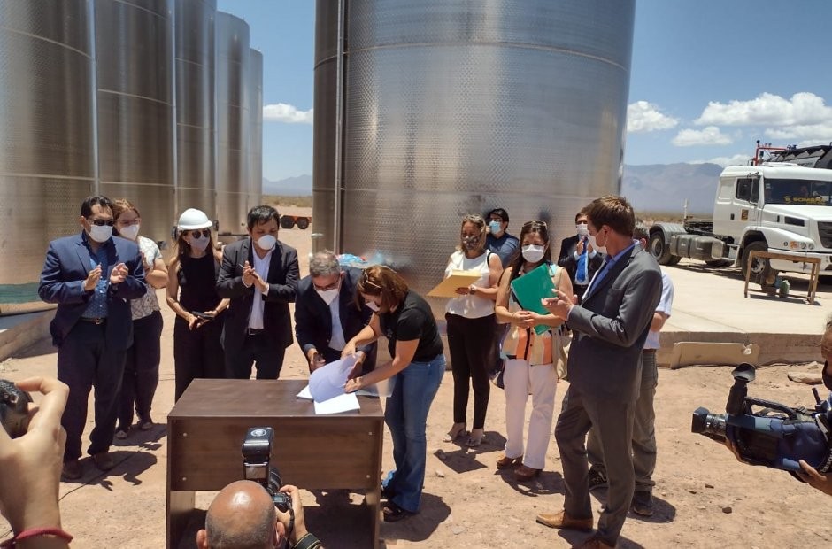 El acto se realizó en el predio del Parque Industrial donde ya se está instalando la Planta Concentradora de Mosto, y participaron en la firma, además del Gobernador, el intendente tinogasteño, Sebastián Nóblega, y Sebastián Caria, secretario de Políticas Industrial y Comercial que firmó en representación del ministro de Industria, Comercio y Empleo, Lisandro Álvarez, quien no pudo estar presente por estar participando de la reunión del Consejo Federal de MiPyME, en la CABA.