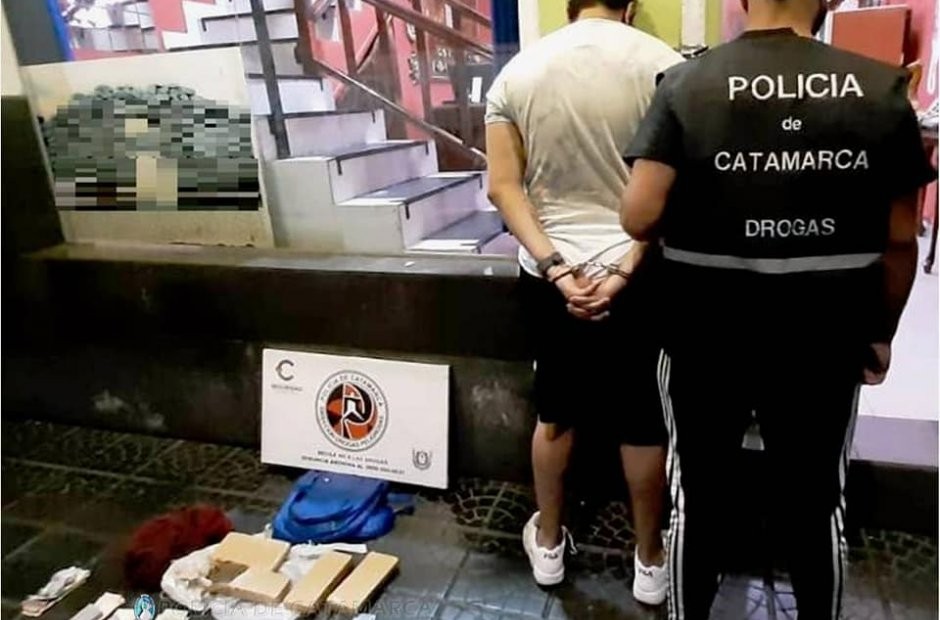 Como resultado de la pesquisa, los efectivos lograron determinar que este masculino usaría otra identidad, en virtud de lo cual se montó un operativo en la zona, logrando detener en la vía pública a un joven de 29 años, a quien al requisarle las pertenencias que llevaba, encontraron en el interior de un bolso y una mochila cuatro (04) panes compactados de una sustancia tipo herbácea, que luego de ser sometida a la prueba de campo correspondiente arrojó que se trataría de 2,559 kg. de Marihuana, dos (2) envoltorios conteniendo 42 Gr. de la misma sustancia, la suma de doscientos cincuenta y tres mil setecientos treinta pesos ($ 253.730) en efectivo, discriminados en billetes de distinta denominación, cien dólares estadounidenses, un (1) teléfono celular Samsung, una (1) balanza apta para pesar gramos, que quedaron en calidad de secuestro.