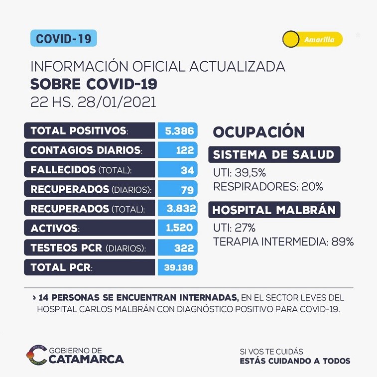 Hasta las 22 horas del jueves 28 de enero, se han detectado 122 nuevos casos positivos de coronavirus en la provincia de Catamarca.