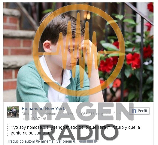 "Soy homosexual y tengo miedo sobre cómo será mi futuro y de que no le guste a las personas”, se lee debajo de la fotografía de “Humans of New York” en Facebook.