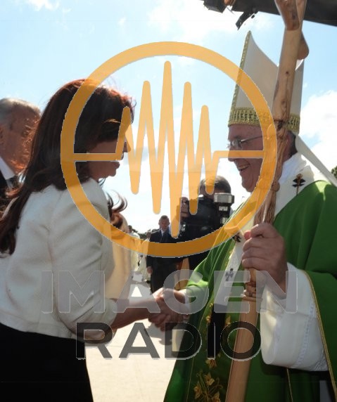 La presidente Cristina Kirchner subió este mediodía al altar donde el papa Francisco ofreció la misa de cierre de su gira en Paraguay, para estrechar la mano del líder del catolicismo y entregarle un cuadro con la copia de un diario de más de 50 años que reflejaba el rezo de Juan XXIII por la salud de Eva Perón.