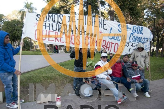 El pasado jueves los diez trabajadores del área, que realizan la recolección de residuos en la ciudad desde hace cuatro años mediante planes de trabajo social, por lo que perciben la suma de tres mil pesos, decidieron encadenarse en la plaza 25 de Mayo para exigir mejoras laborales.