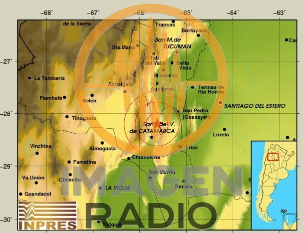 con epicentro a 30 km al N de San Fernando del Valle de Catamarca a 10 km de profundidad.