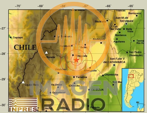 El epicentro se ubicó a 140 km al NO de La Rioja a 166 km al O de San F. Del Valle De Catamarca y a 26 km al SE de Tinogasta. Magnitud: 2.7 Profundidad: 152 km.