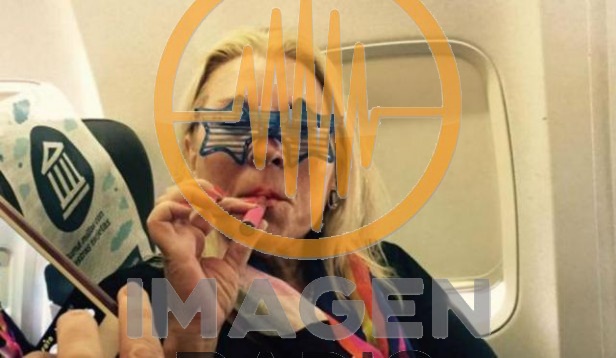Antes de llegar a la provincia, la ex candidata presidencial compartió con los usuarios de Twitter una imagen acompañada por la frase "Rumbo a Tucumán", en la que simula que fuma arriba del avión con unos anteojos azules con forma de estrella.