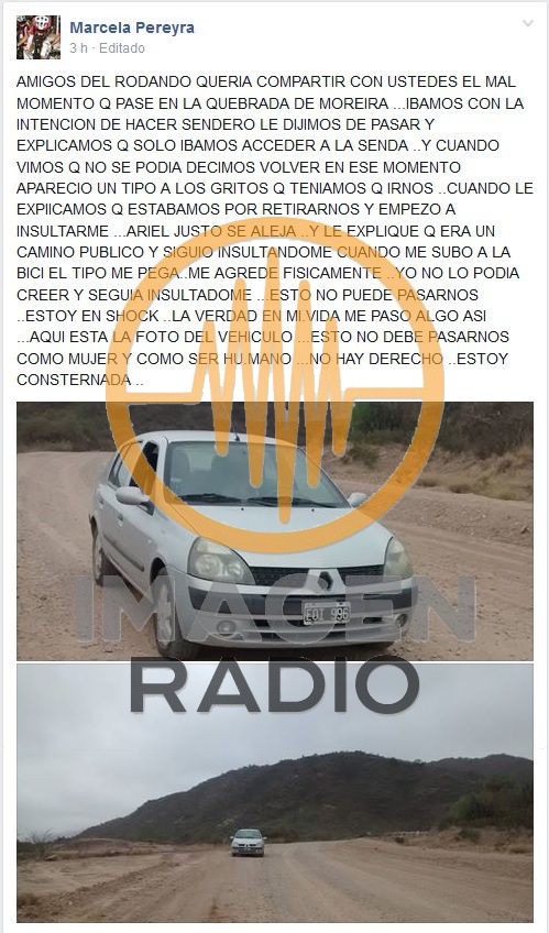 El hecho ocurrió en la Quebrada de Moreira cuando los ciclistas intentaban recorrer el sendero y fueron interceptados por Tanquía quien se conducía a bordo de un Renault Clío de color gris patente EOI 996 y les solicitó que se retiraran. Pereyra afirma que a pesar aceptar el pedido, fue agredida físicamente por el empleado de Vialidad Provincial. El hecho tuvo gran repercusión en redes sociales ya que los ciclistas forman parte de un grupo llamado "Rodando x el valle", quienes se encargaron de viralizar lo sucedido.