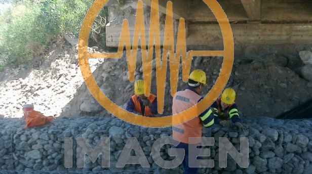Personal del Campamento Bañado de Ovanta realiza trabajos de encauzamiento y construcción de defensas para proteger el puente que atraviesa el río El Abra, afectado por la emergencia estival ocurrida en marzo de este año.