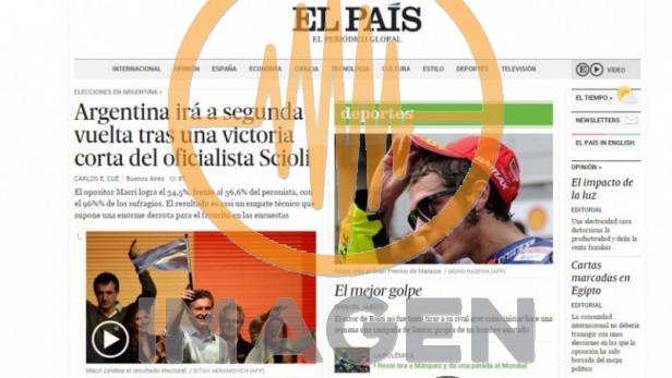 "Argentina irá a segunda vuelta tras una victoria corta del oficialista Scioli", tituló El País, de España, y dejó entrever un empate técnico que supone una derrota para el Frente para la Victoria.
