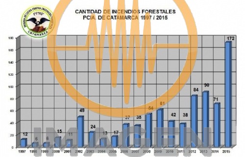 El 2015 se convirtió en el año con mayor cantidad de incendios forestales registrados en la provincia desde 1997. De acuerdo con la información brindada por la Brigada de Lucha contra Incendios Forestales de la provincia, hasta la fecha se contabilizaron 172 incendios. A pesar de ello, la cantidad de hectáreas afectadas por el fuego no representa una cifra elevada, se van consumiendo 10.320, mucho menos que las 77.223 registradas en el año 2000, la peor de las estadísticas en cuanto a la superficie afectada porque en esa oportunidad solo se habían registrado 15 incendios.