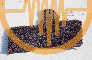 Más de 2400 personas participaron en Lulea, Suecia, intentando un nuevo Guinness World Record , al formar un enorme LIKE de Facebook.