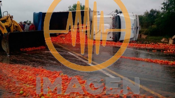 Un camión volcó a causa de la lluvia y dejó intransitable gran parte del camino,Un camión cargado con cajones de tomates sufrió las consecuencias de la insistente tormenta que afecta desde temprano a gran parte de Córdoba.