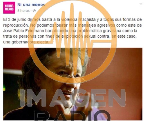 “El 3 de junio dijimos basta a la violencia machista y a todas sus formas de reproducción. No podemos tolerar más mensajes agresivos como este de José Pablo Feinmann banalizando una problemática gravísima como la trata de personas con fines de explotación sexual contra, en este caso, una gobernadora electa”, dice el mensaje.