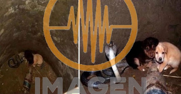 Los dueños vieron a la mamá de los animalitos ladrando hacia el pozo, desesperada por sus hijitos. Al asomarse, vieron que los perritos estaban en compañía de una cobra.