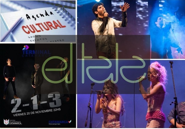 Rock nacional en la Terminal con 2-1-3. Este viernes 20 de noviembre a las 22 hs. el rock se hará presente en el patio de comidas de la Terminal Catamarca, con el show de la banda 2-1-3, que interpretará covers de rock nacional, con temas de Soda Stereo, Alberto Spinetta, Pappo, entre otros. Integran 2-1-3 Esteban Vega en guitarra y voz, Raúl Gómez en bajo y coros y Abel Martínez en batería. No se cobra derecho de espectáculo.