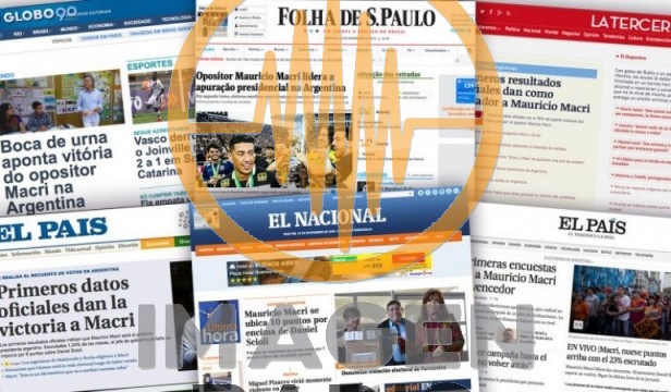Folha de Sao Paulo, de Brasil, encabeza con “Opositor Mauricio Macri lidera el resultado presidencial en la Argentina” y O’Globoremarca con “el nuevo presidente se decide un nuevo modelo político”.