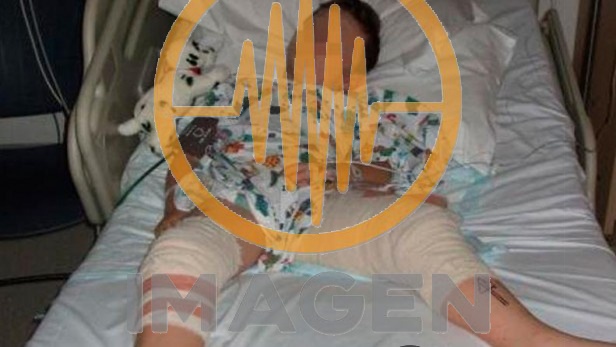 La policía hizo pública la foto del niño en una cama del hospital luego del incidente ocurrido en su casa.