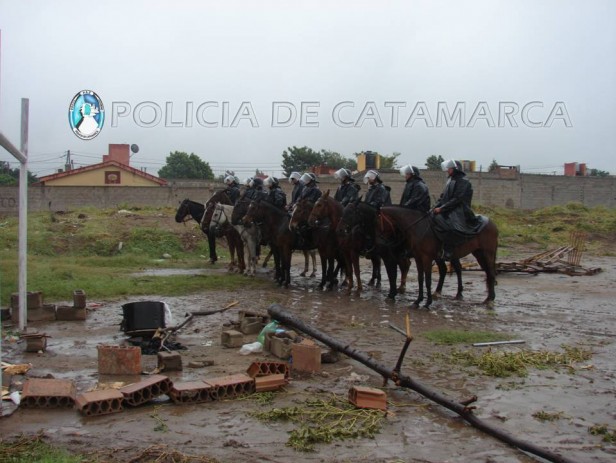 La cronica policial informa que desde las 07:00, más de 100 efectivos pertenecientes a variasComisarías, conjuntamente con el personal de Grupos Especiales, InfanteríaGrupo Norte, del GIMAR, Kuntur, Canes, Montada, y la DivisiónInvestigaciones de la Policía de la Provincia, se concretó el desalojo depersonas y cosas en los terrenos usurpados que comprenden desde la calleBélgica y Monseñor Sueldo hacia el Norte.La medida judicial, que fue dispuesta ayer por el Juez de Garantías, Dr.Ramón Porfirio Acuña, a solicitud de la Fiscalía de Instrucción Nº1, a cargodel Dr. Víctor Figueroa, también se extendió a otras casas ubicadas frente albarrio 14 Viviendas Norte