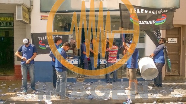 Personal de la empresa Formar SRL, contratada por la operadora de televisión satelital DirecTv, se encuentran de paro y se manifiestan, en calle República entre Tucumán y Vicario Segura, contra la reducción de personal que les fue anunciada.