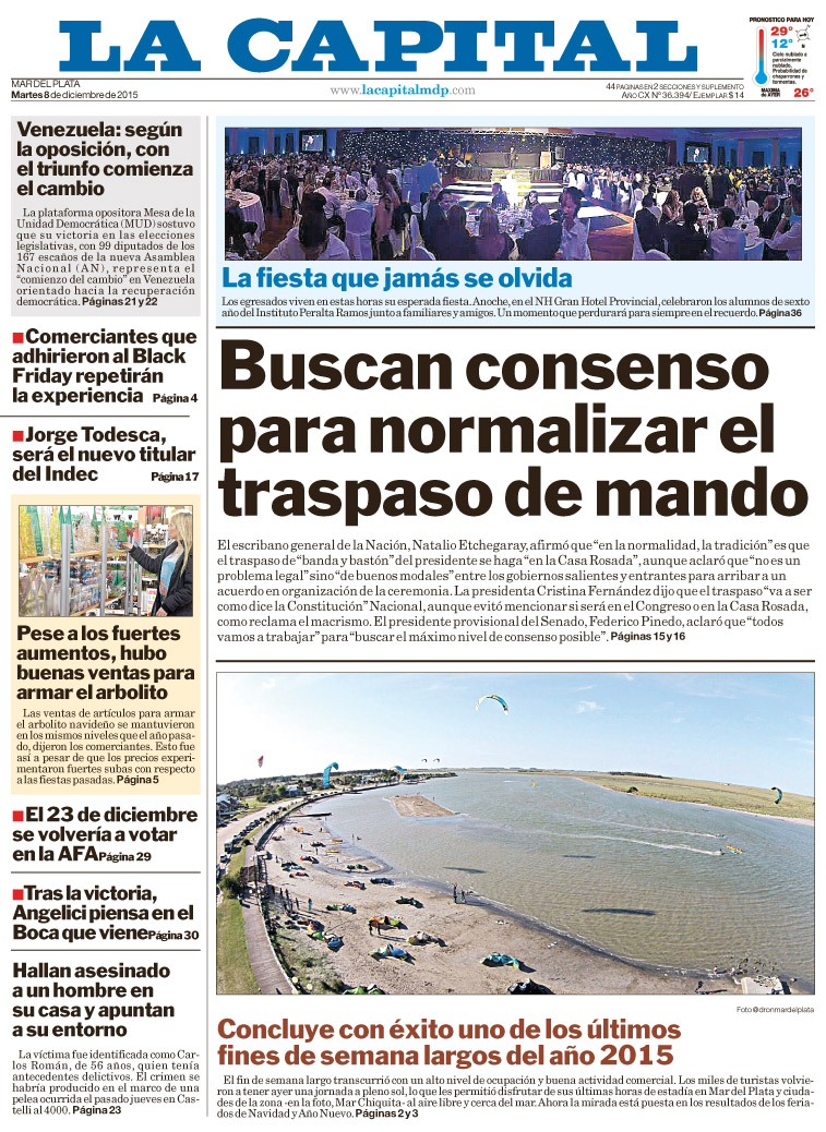 Principales títulos para la jornada de este martes 8 de Diciembre